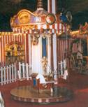 Diesen stationären Karusselltyp gibt es als Münzautomatenkarussell mit 4 und 6 Sitzen. Die Sitze dieser Abbildung sind mit Selleln und dekupiertern Pferdeköpfe ausgesgtattet.